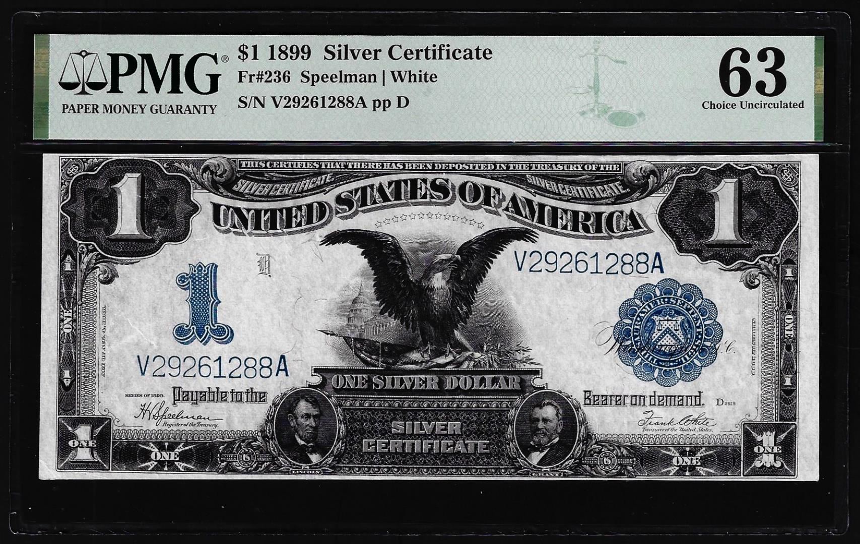 One 1899 $1 Black Eagle Silver Certificate Note Fr.236 PMG Choice Uncirculated 63 EPQ*. PMG Certified.