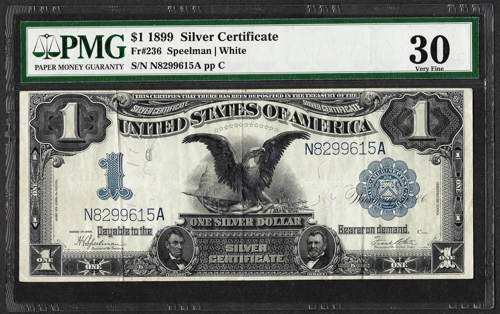 One 1899 $1 Black Eagle Silver Certificate Note Fr.236 PMG Very Fine 30. PMG Certified.