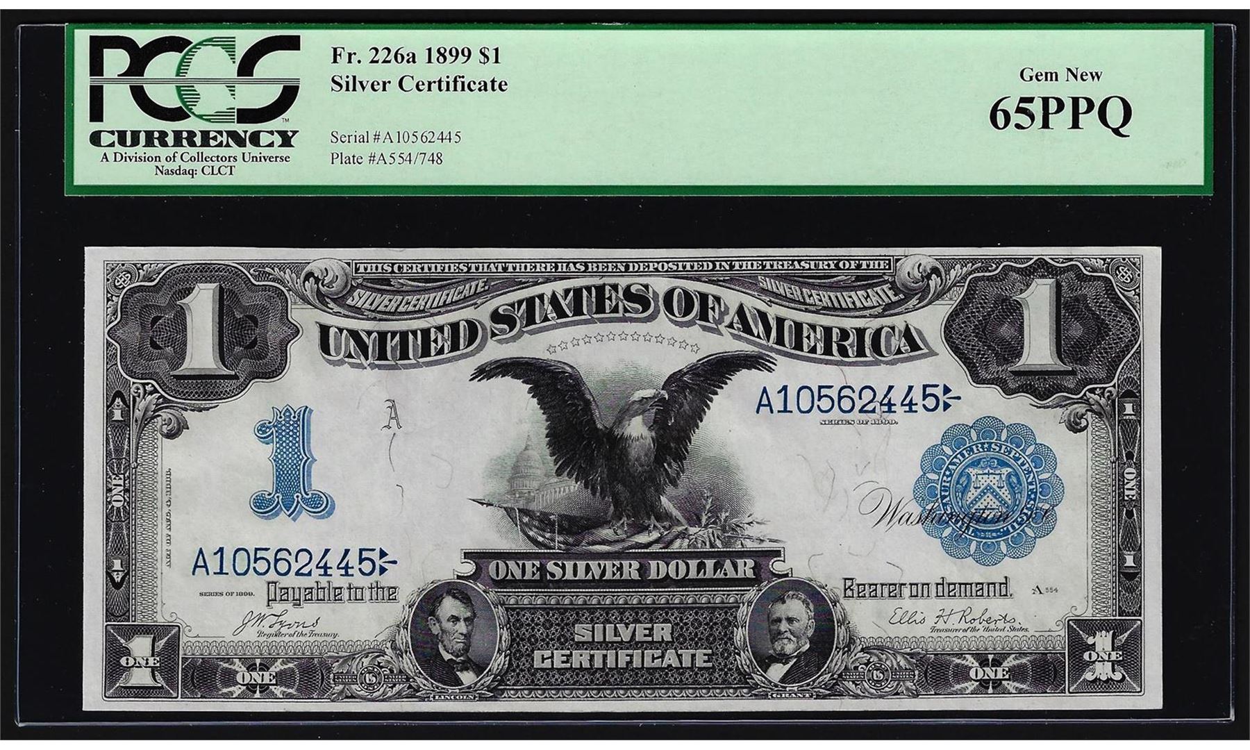 One 1899 $1 Black Eagle Silver Certificate Note PCGS Gem New 65PPQ. PCGS Graded.