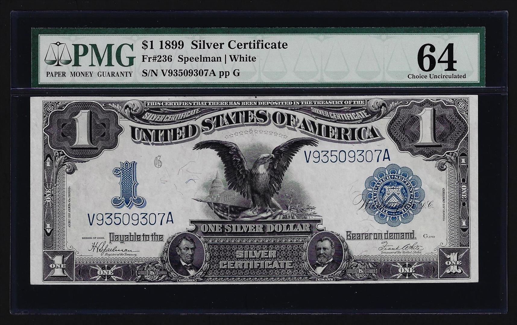 One 1899 $1 Black Eagle Silver Certificate Note PMG CU64. PMG Certified.