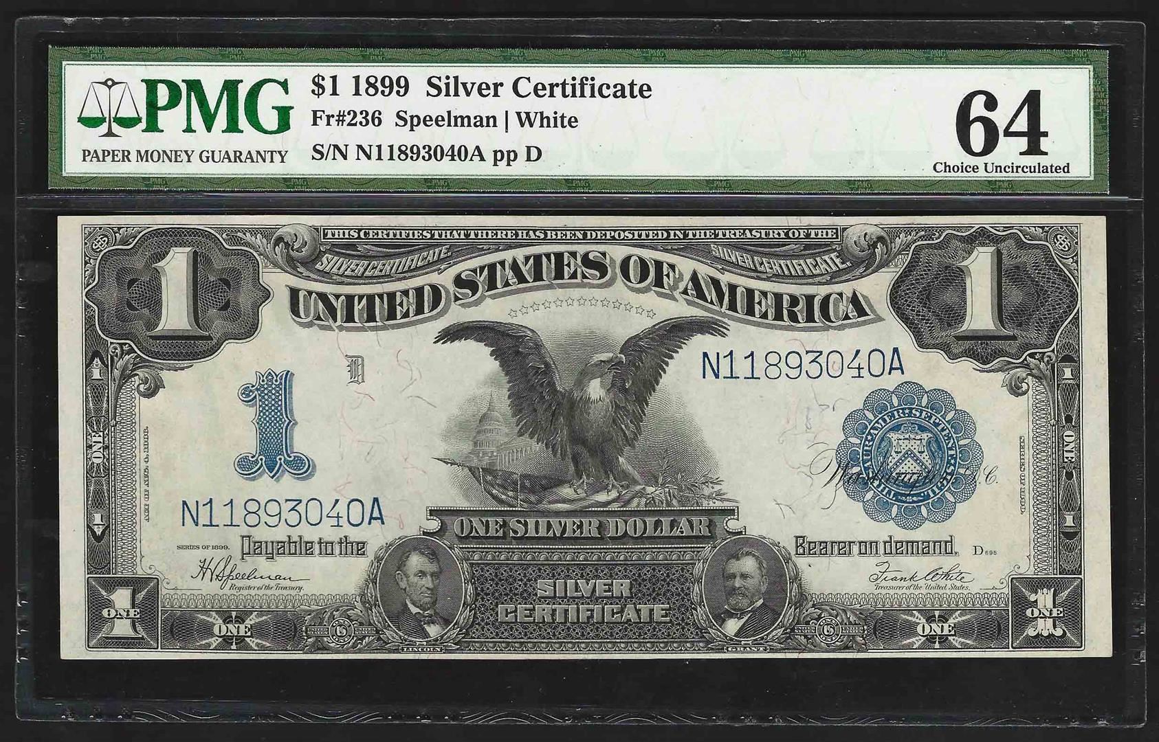 One 1899 $1 Black Eagle Silver Certificate Note PMG Choice Uncirculated 64. PMG Certified.