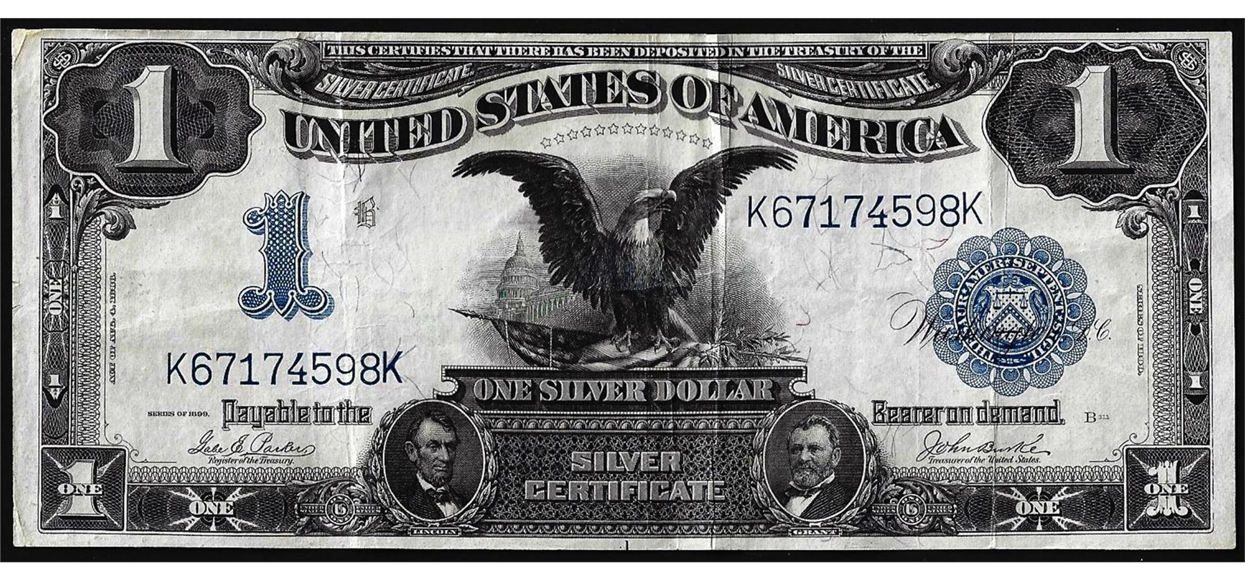 One 1899 $1 Black Eagle Silver Certificate Note.