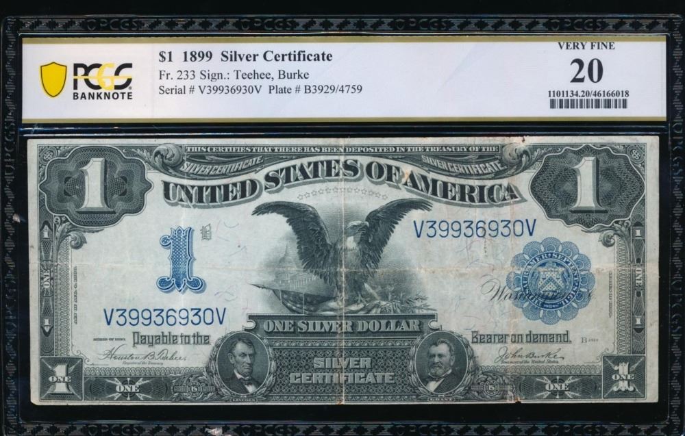 One 1899 $1 Black Eagle Silver Certificate PCGS 20.