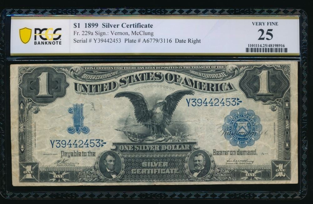One 1899 $1 Black Eagle Silver Certificate PCGS 25.