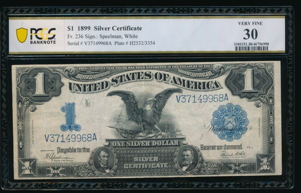 One 1899 $1 Black Eagle Silver Certificate PCGS 30.
