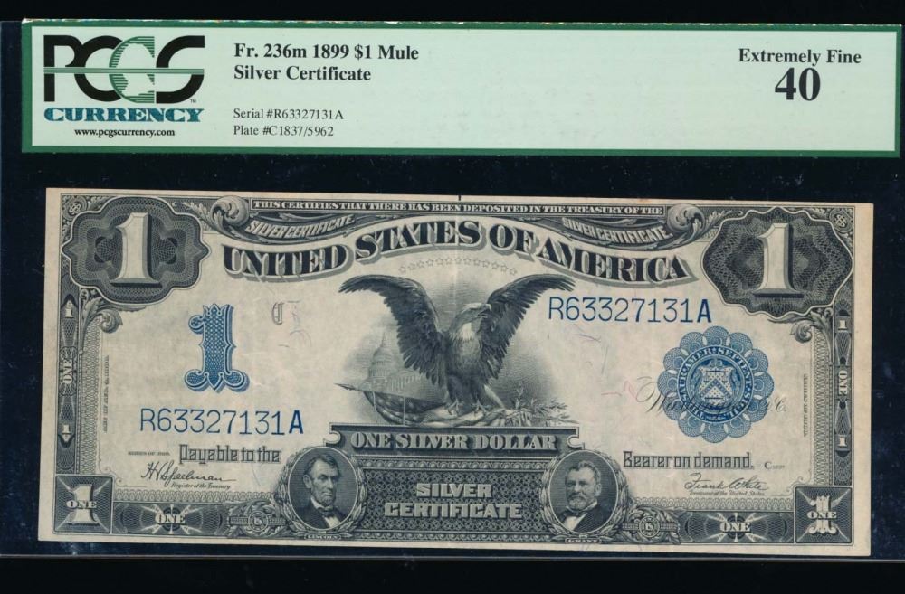 One 1899 $1 Black Eagle Silver Certificate PCGS 40.