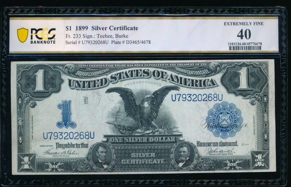 One 1899 $1 Black Eagle Silver Certificate PCGS 40.