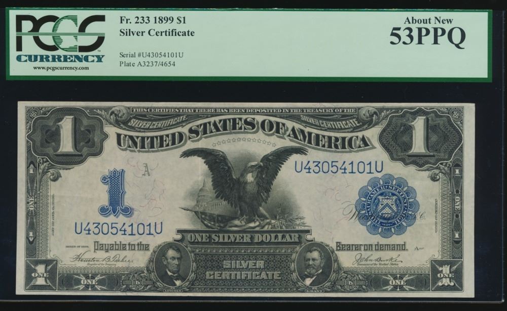 One 1899 $1 Black Eagle Silver Certificate PCGS 53PPQ.