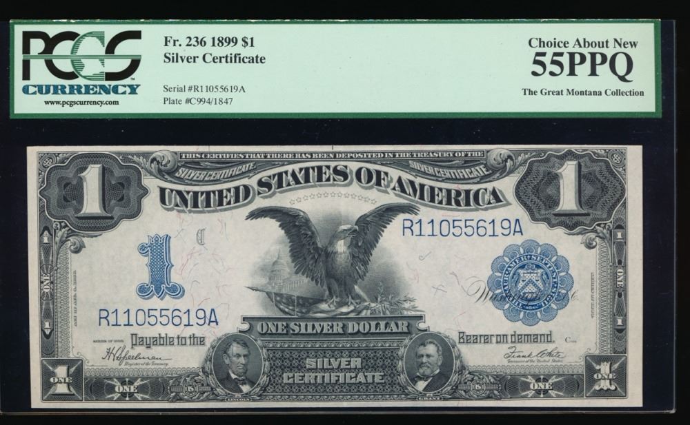 One 1899 $1 Black Eagle Silver Certificate PCGS 55PPQ.