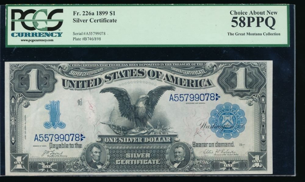 One 1899 $1 Black Eagle Silver Certificate PCGS 58PPQ.