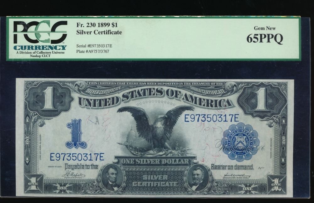 One 1899 $1 Black Eagle Silver Certificate PCGS 65PPQ.