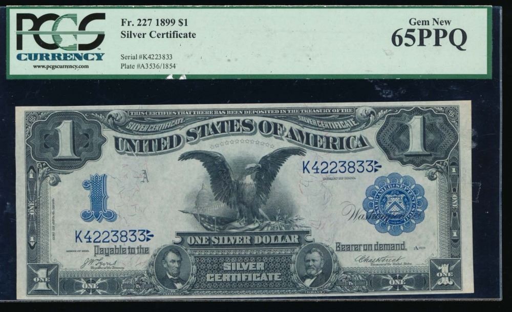 One 1899 $1 Black Eagle Silver Certificate PCGS 65PPQ.