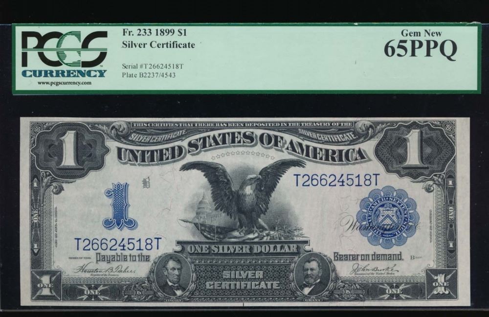 One 1899 $1 Black Eagle Silver Certificate PCGS 65PPQ.