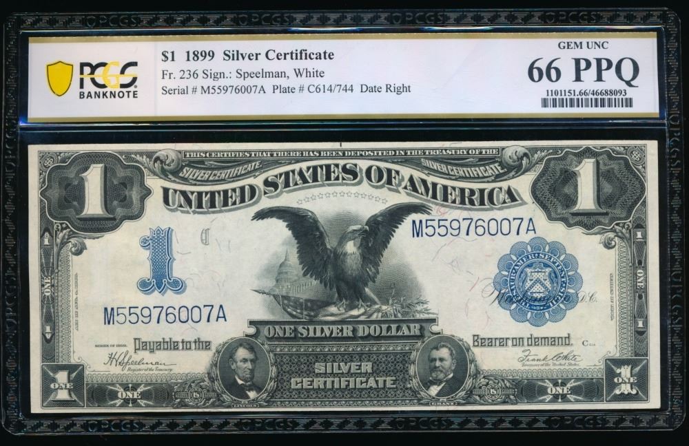 One 1899 $1 Black Eagle Silver Certificate PCGS 66PPQ.