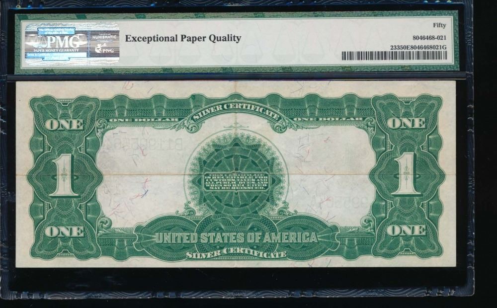 One 1899 $1 Black Eagle Silver Certificate PMG 50EPQ.