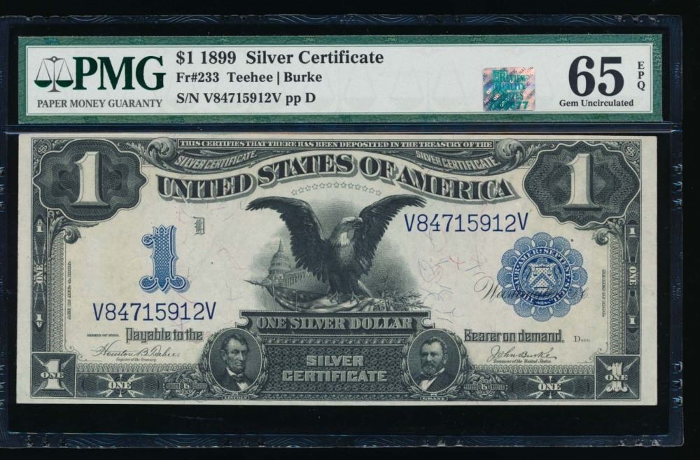 One 1899 $1 Black Eagle Silver Certificate PMG 65EPQ.