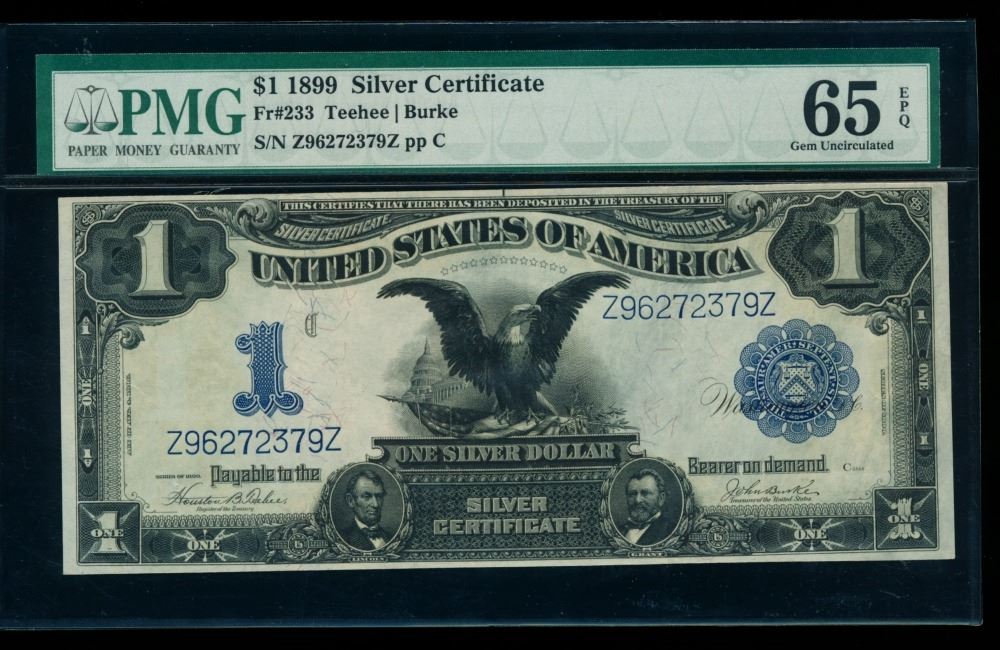One 1899 $1 Black Eagle Silver Certificate PMG 65EPQ.