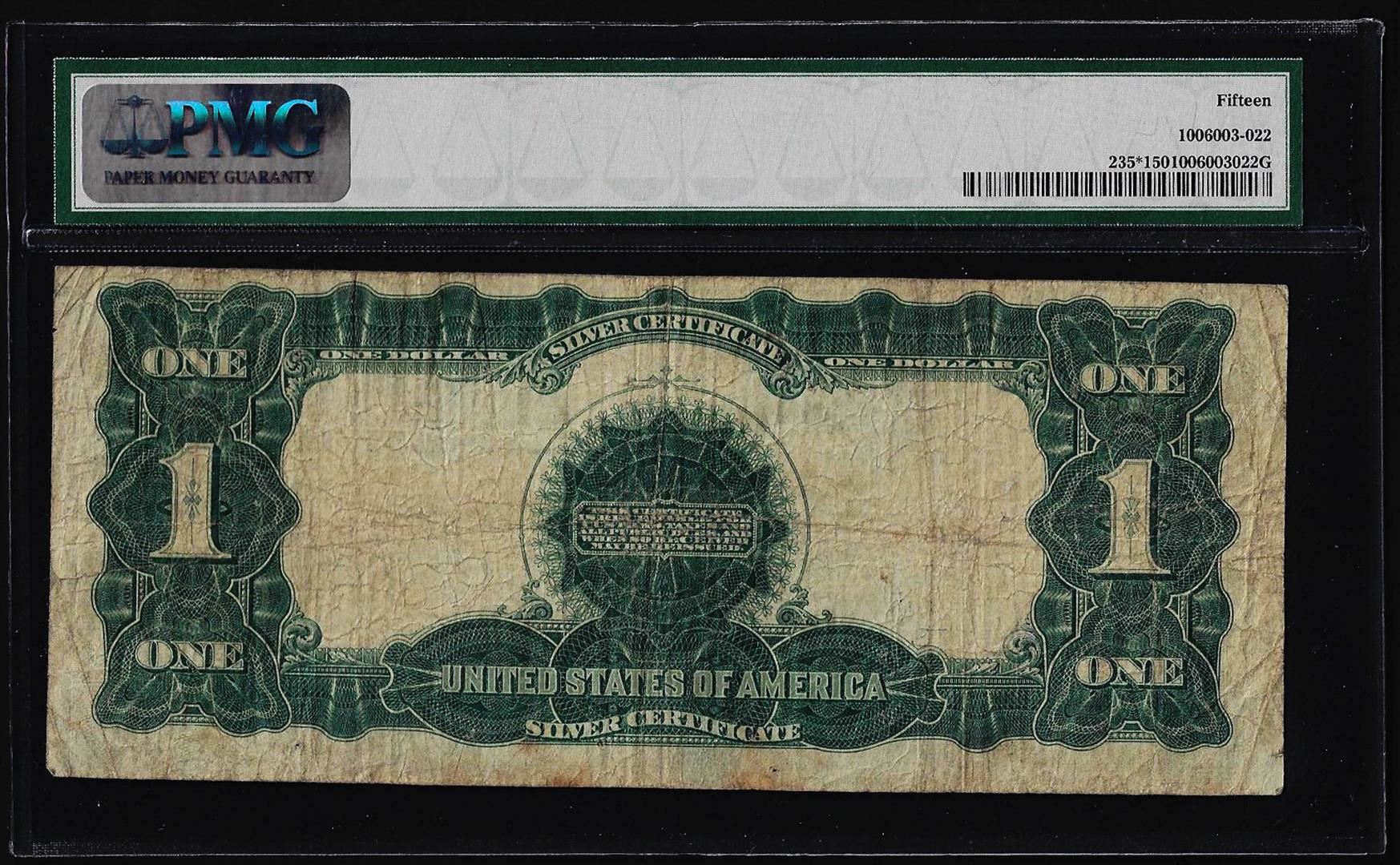 One 1899 $1 Black Eagle Silver Certificate STAR Note Fr.235* PMG Choice Fine 15. PMG Certified.