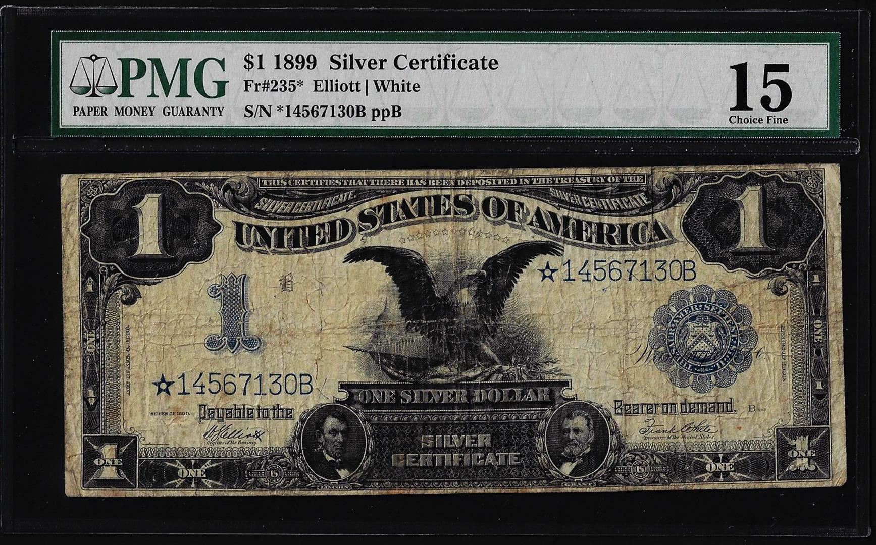 One 1899 $1 Black Eagle Silver Certificate STAR Note Fr.235* PMG Choice Fine 15. PMG Certified.