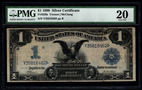 One 1899 $1 Black Eagle Silver Certificate Series Key Note PMG 20.
