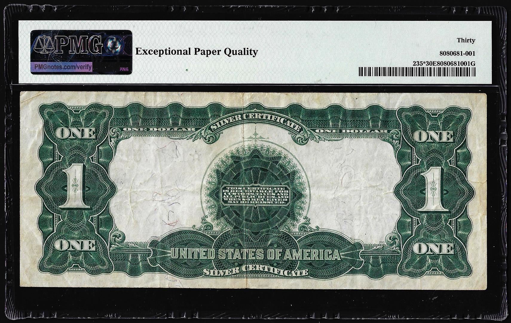 One 1899 $1 Black Eagle Silver Certificate Star Note Fr.235* PMG Very Fine 30EPQ. PMG Certified.