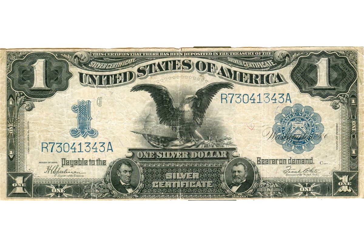 One 1899 $1 Black Eagle Silver Certificate US Currency Bank Note.