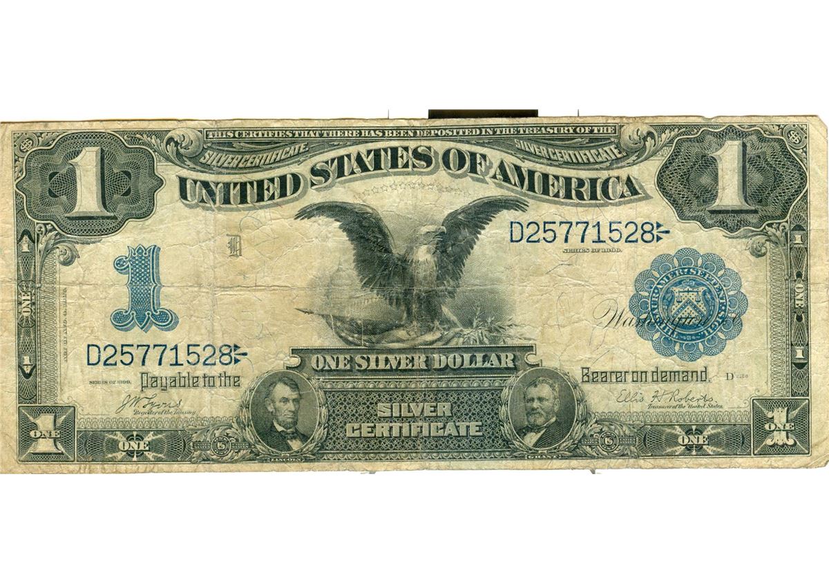One 1899 $1 Black Eagle Silver Certificate US Currency Bank Note.