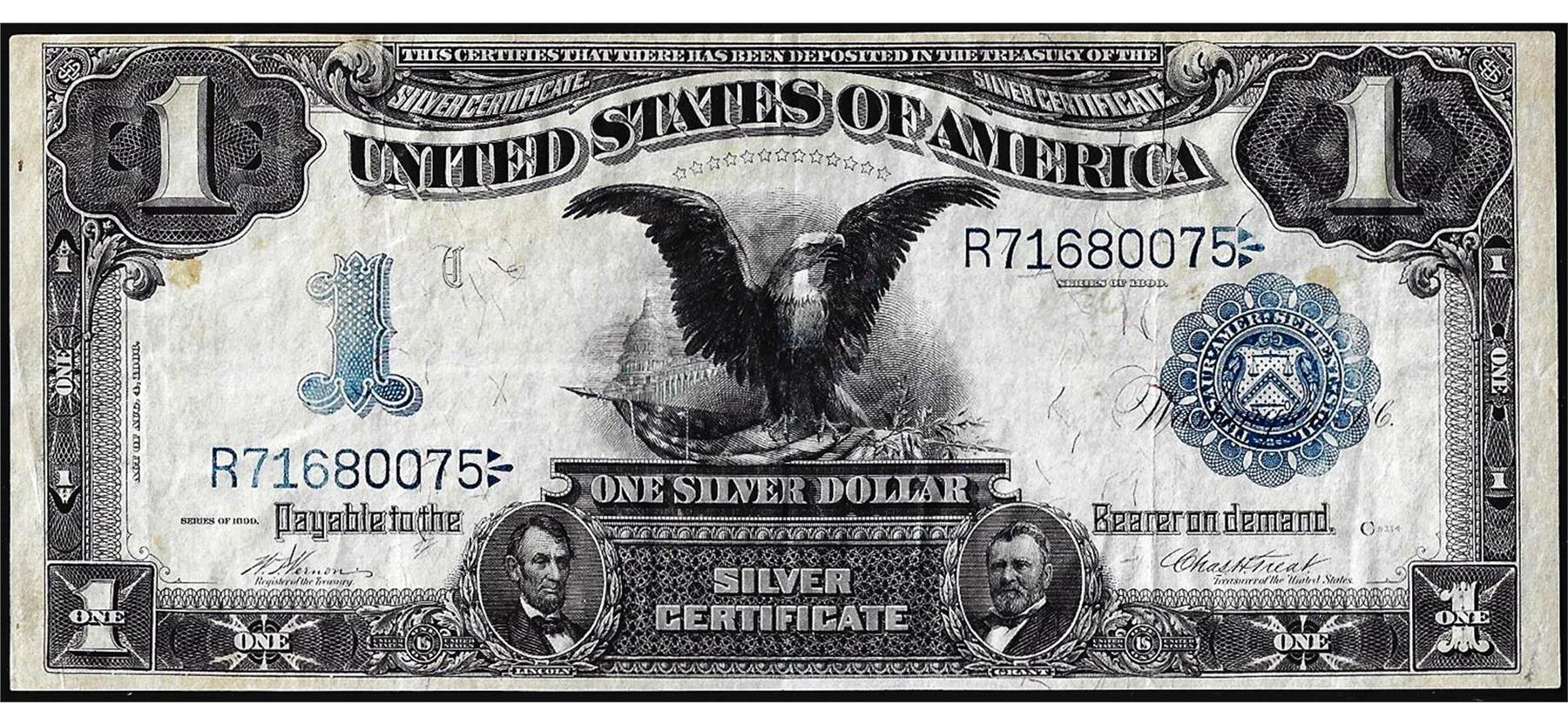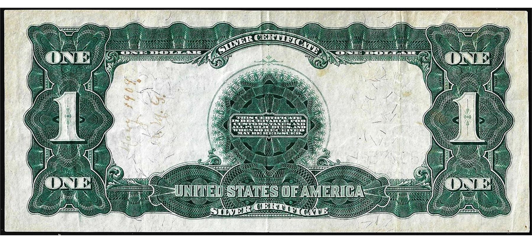 One 1899 $1 Black Eagle Silver Certificate w/ Reverse Annotation.