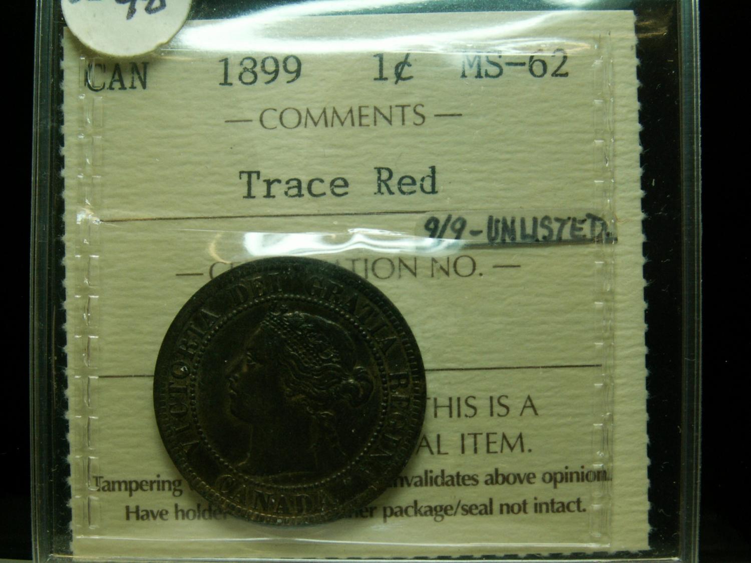 1899 1¢ ICCS MS62 Trace Red 8/9 unlisted