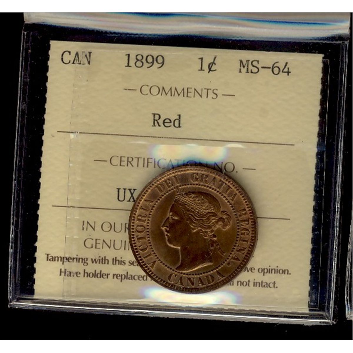 1899 1¢ ICCS MS64RD. 80% red with full lustre.