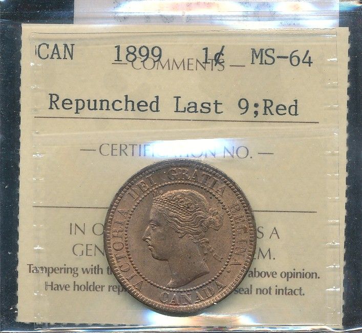 1899 1¢ ICCS MS64RD. Designated with repunched last 9. A popular variety and seldom offered in near Gem condition.