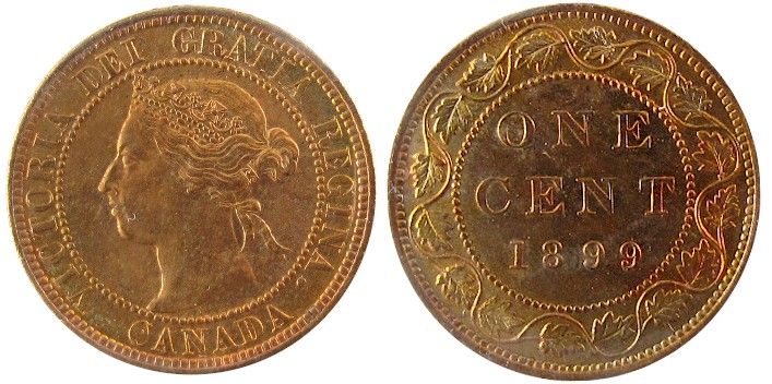 1899 1¢ ICCS MS64RD. Gem 90% red with light tones of green.