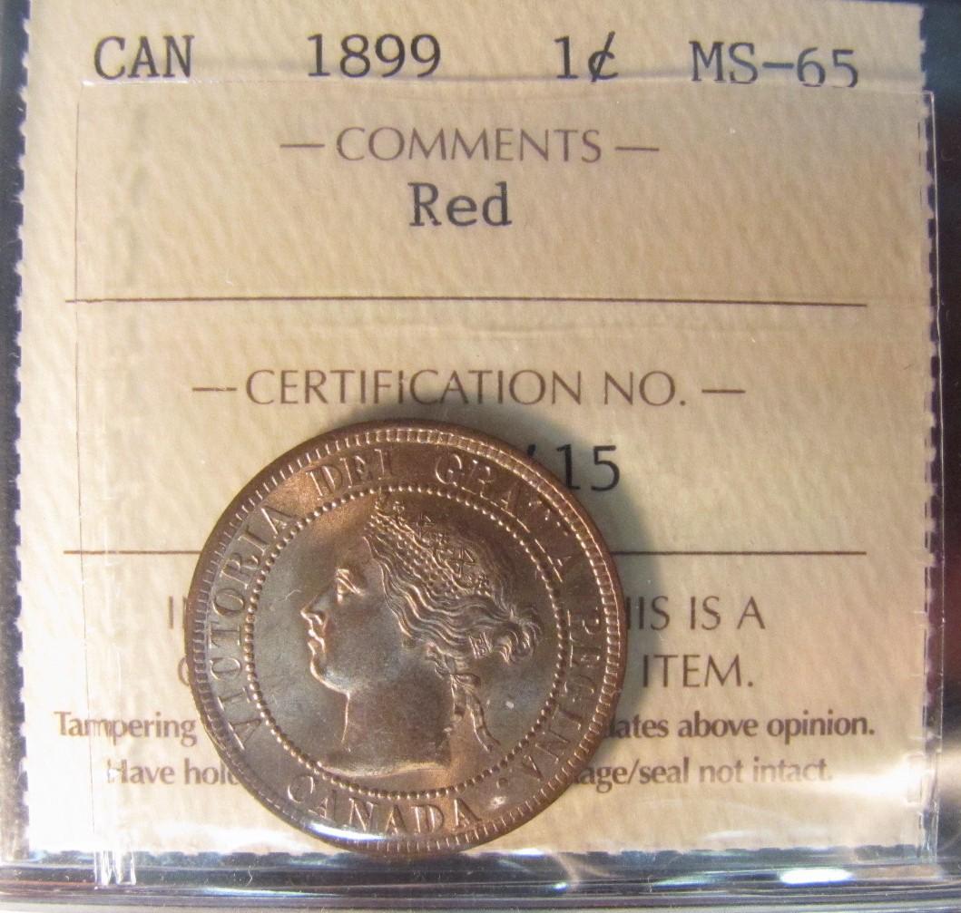 1899 1¢ ICCS MS65. Full red with clean fields.