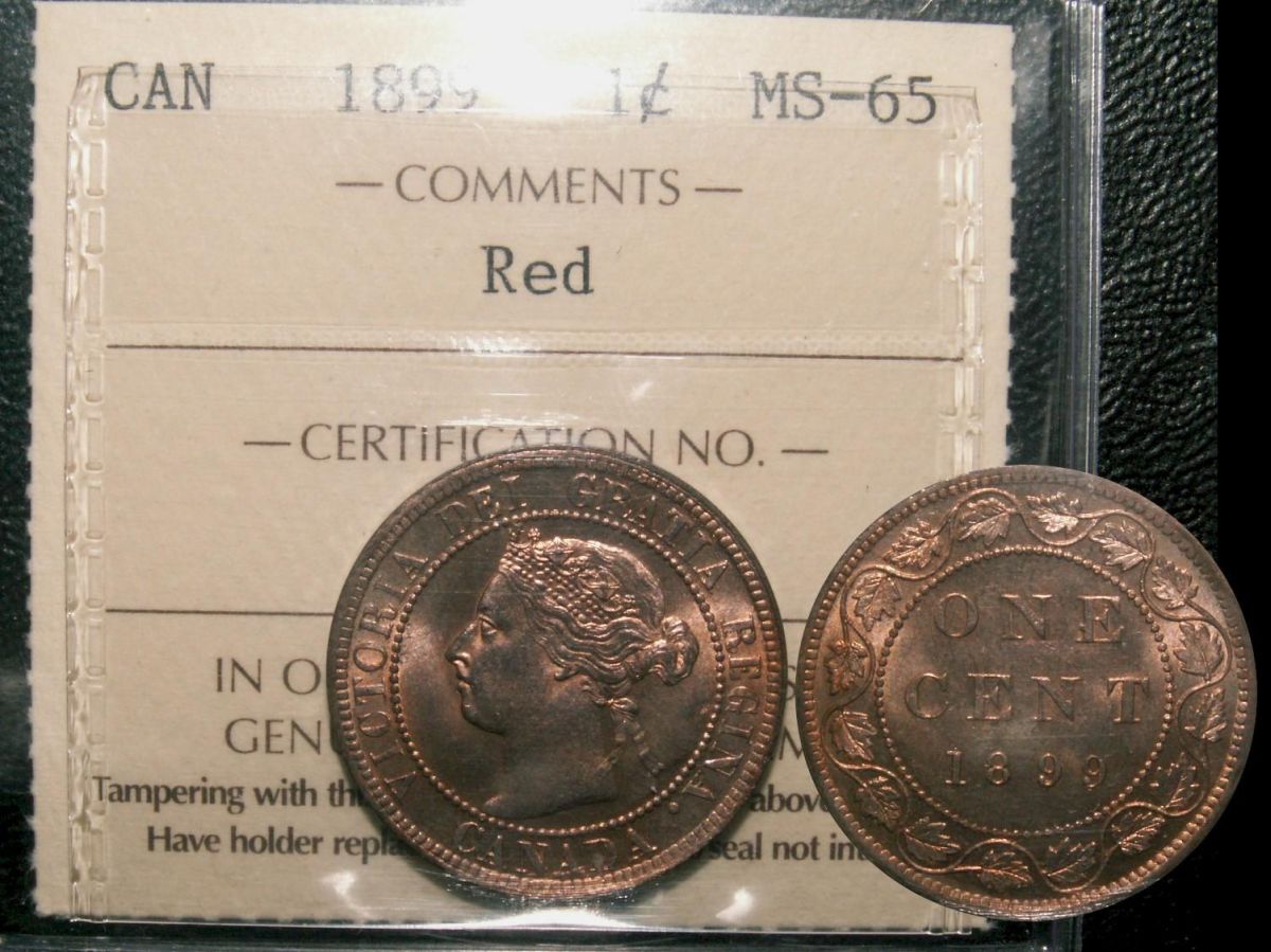 1899 1¢ ICCS MS65RD. Gem 95% red.