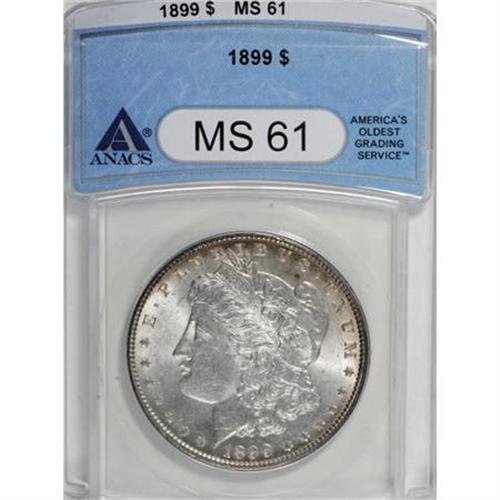 <B>1899 $1 MS61 ANACS.</B></I> NGC Census: (168/5025). PCGS Population (165/7501). Mintage: 330,846. Numismedia Wsl. Price for NGC/PCGS coin in MS61: $250. (#7258)<BR><BR><B>Coin Engraver:</B> George T. Morgan<BR><BR><b>Shipping:</b> Coins & Currency (<a target="_blank" href="http://www.heritageauctions.com/common/shipping.php">view shipping information</a>)