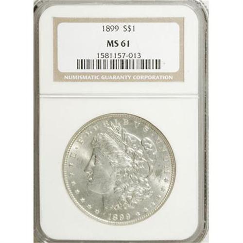 <B>1899 $1 MS61 NGC.</B></I> NGC Census: (171/5059). PCGS Population (167/7700). Mintage: 330,846. Numismedia Wsl. Price for NGC/PCGS coin in MS61: $250. (#7258)<BR><BR><B>Coin Engraver:</B> George T. Morgan<BR><BR><b>Shipping:</b> Coins & Currency (<a target="_blank" href="http://www.heritageauctions.com/common/shipping.php">view shipping information</a>)
