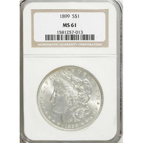 <B>1899 $1 MS61 NGC.</B></I> NGC Census: (184/5148). PCGS Population (167/7762). Mintage: 330,846. Numismedia Wsl. Price for NGC/PCGS coin in MS61: $250. (#7258)<BR><BR><B>Coin Engraver:</B> George T. Morgan<BR><BR><b>Shipping:</b> Coins & Currency (<a target="_blank" href="http://www.heritageauctions.com/common/shipping.php">view shipping information</a>)