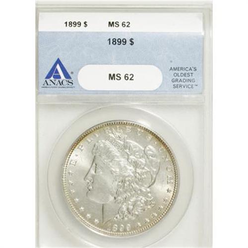 <B>1899 $1 MS62 ANACS.</B></I> NGC Census: (550/4509). PCGS Population (918/6797). Mintage: 330,846. Numismedia Wsl. Price for NGC/PCGS coin in MS62: $275. (#7258)<BR><BR><B>Coin Engraver:</B> George T. Morgan<BR><BR><b>Shipping:</b> Coins & Currency (<a target="_blank" href="http://www.heritageauctions.com/common/shipping.php">view shipping information</a>)