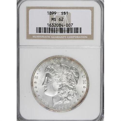 <B>1899 $1 MS62 NGC.</B></I> NGC Census: (550/4509). PCGS Population (913/6714). Mintage: 330,846. Numismedia Wsl. Price for NGC/PCGS coin in MS62: $275. (#7258)<BR><BR><B>Coin Engraver:</B> George T. Morgan<BR><BR><b>Shipping:</b> Coins & Currency (<a target="_blank" href="http://www.heritageauctions.com/common/shipping.php">view shipping information</a>)