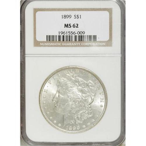 <B>1899 $1 MS62 NGC.</B></I> NGC Census: (550/4509). PCGS Population (916/6784). Mintage: 330,846. Numismedia Wsl. Price for NGC/PCGS coin in MS62: $275. (#7258)<BR><BR><B>Coin Engraver:</B> George T. Morgan<BR><BR><b>Shipping:</b> Coins & Currency (<a target="_blank" href="http://www.heritageauctions.com/common/shipping.php">view shipping information</a>)