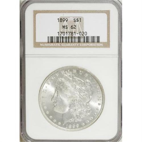 <B>1899 $1 MS62 NGC.</B></I> . NGC Census: (578/4638). PCGS Population (931/6886). Mintage: 330,846. Numismedia Wsl. Price for NGC/PCGS coin in MS62: $275. (#7258)<BR><BR><B>Coin Engraver:</B> George T. Morgan<BR><BR><b>Shipping:</b> Coins & Currency (<a target="_blank" href="http://www.heritageauctions.com/common/shipping.php">view shipping information</a>)