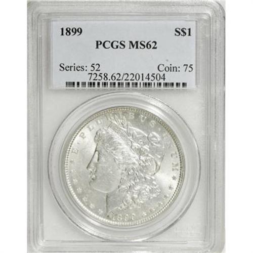 <B>1899 $1 MS62 PCGS.</B></I> . PCGS Population (931/6886). NGC Census: (578/4638). Mintage: 330,846. Numismedia Wsl. Price for NGC/PCGS coin in MS62: $275. (#7258)<BR><BR><B>Coin Engraver:</B> George T. Morgan<BR><BR><b>Shipping:</b> Coins & Currency (<a target="_blank" href="http://www.heritageauctions.com/common/shipping.php">view shipping information</a>)