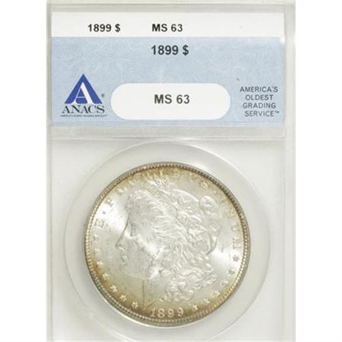 <B>1899 $1 MS63 ANACS.</B></I> NGC Census: (1698/2811). PCGS Population (2792/4005). Mintage: 330,846. Numismedia Wsl. Price for NGC/PCGS coin in MS63: $300. (#7258)<BR><BR><B>Coin Engraver:</B> George T. Morgan<BR><BR><b>Shipping:</b> Coins & Currency (<a target="_blank" href="http://www.heritageauctions.com/common/shipping.php">view shipping information</a>)
