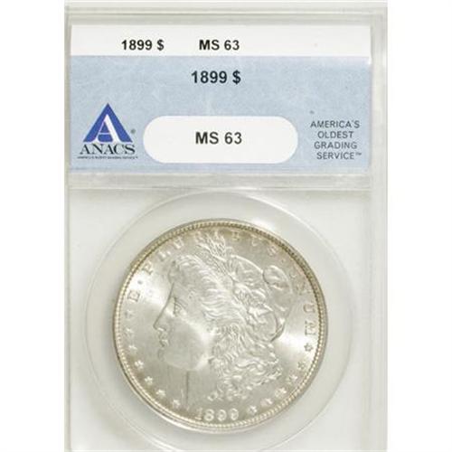 <B>1899 $1 MS63 ANACS.</B></I> NGC Census: (1698/2811). PCGS Population (2792/4005). Mintage: 330,846. Numismedia Wsl. Price for NGC/PCGS coin in MS63: $300. (#7258)<BR><BR><B>Coin Engraver:</B> George T. Morgan<BR><BR><b>Shipping:</b> Coins & Currency (<a target="_blank" href="http://www.heritageauctions.com/common/shipping.php">view shipping information</a>)