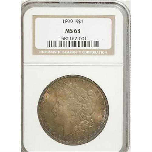 <B>1899 $1 MS63 NGC.</B></I> NGC Census: (1698/2811). PCGS Population (2792/4005). Mintage: 330,846. Numismedia Wsl. Price for NGC/PCGS coin in MS63: $300. (#7258)<BR><BR><B>Coin Engraver:</B> George T. Morgan<BR><BR><b>Shipping:</b> Coins & Currency (<a target="_blank" href="http://www.heritageauctions.com/common/shipping.php">view shipping information</a>)