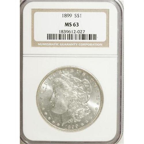<B>1899 $1 MS63 NGC.</B></I> NGC Census: (1698/2811). PCGS Population (2790/3994). Mintage: 330,846. Numismedia Wsl. Price for NGC/PCGS coin in MS63: $300. (#7258)<BR><BR><B>Coin Engraver:</B> George T. Morgan<BR><BR><b>Shipping:</b> Coins & Currency (<a target="_blank" href="http://www.heritageauctions.com/common/shipping.php">view shipping information</a>)