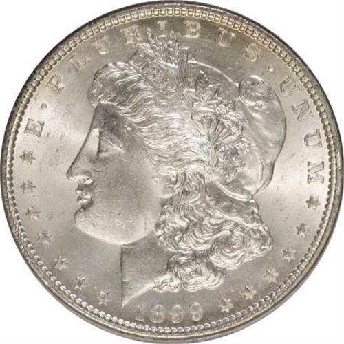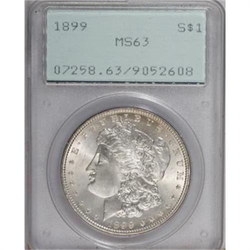 <B>1899 $1 MS63 PCGS.</B></I> PCGS Population (2791/4003). NGC Census: (1698/2811). Mintage: 330,846. Numismedia Wsl. Price for NGC/PCGS coin in MS63: $300. (#7258)<BR><BR><B>Coin Engraver:</B> George T. Morgan<BR><BR><b>Shipping:</b> Coins & Currency (<a target="_blank" href="http://www.heritageauctions.com/common/shipping.php">view shipping information</a>)