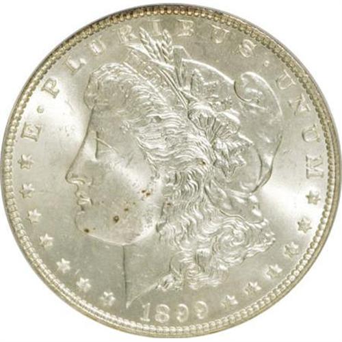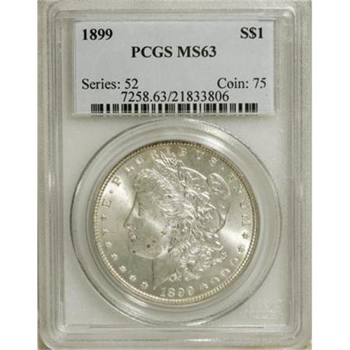 <B>1899 $1 MS63 PCGS.</B></I> PCGS Population (2839/4102). NGC Census: (1769/2910). Mintage: 330,846. Numismedia Wsl. Price for NGC/PCGS coin in MS63: $300. (#7258)<BR><BR><B>Coin Engraver:</B> George T. Morgan<BR><BR><b>Shipping:</b> Coins & Currency (<a target="_blank" href="http://www.heritageauctions.com/common/shipping.php">view shipping information</a>)