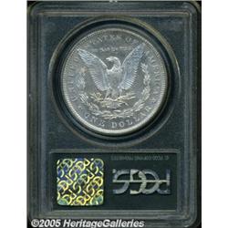 <B>1899<img border='0' src='http://www.heritagecoins.com/images/star.gif' width=10 height=10>$1 MS64 Deep Mirror Prooflike PCGS.</B></I> Nicely mirrored fields offer a strong contrast with the sharply struck design elements. A couple of minor marks are noted on Liberty's cheek.
