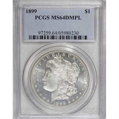<B>1899 $1 MS64 Deep Mirror Prooflike PCGS.</B></I> Well struck with watery, deeply reflective fields and nicely frosted devices. Essentially untoned, with trace amounts of milkiness and a few scattered, small abrasions on each side. <BR><BR><b>Shipping:</b> Coins & Currency (<a target="_blank" href="http://www.heritageauctions.com/common/shipping.php">view shipping information</a>)
